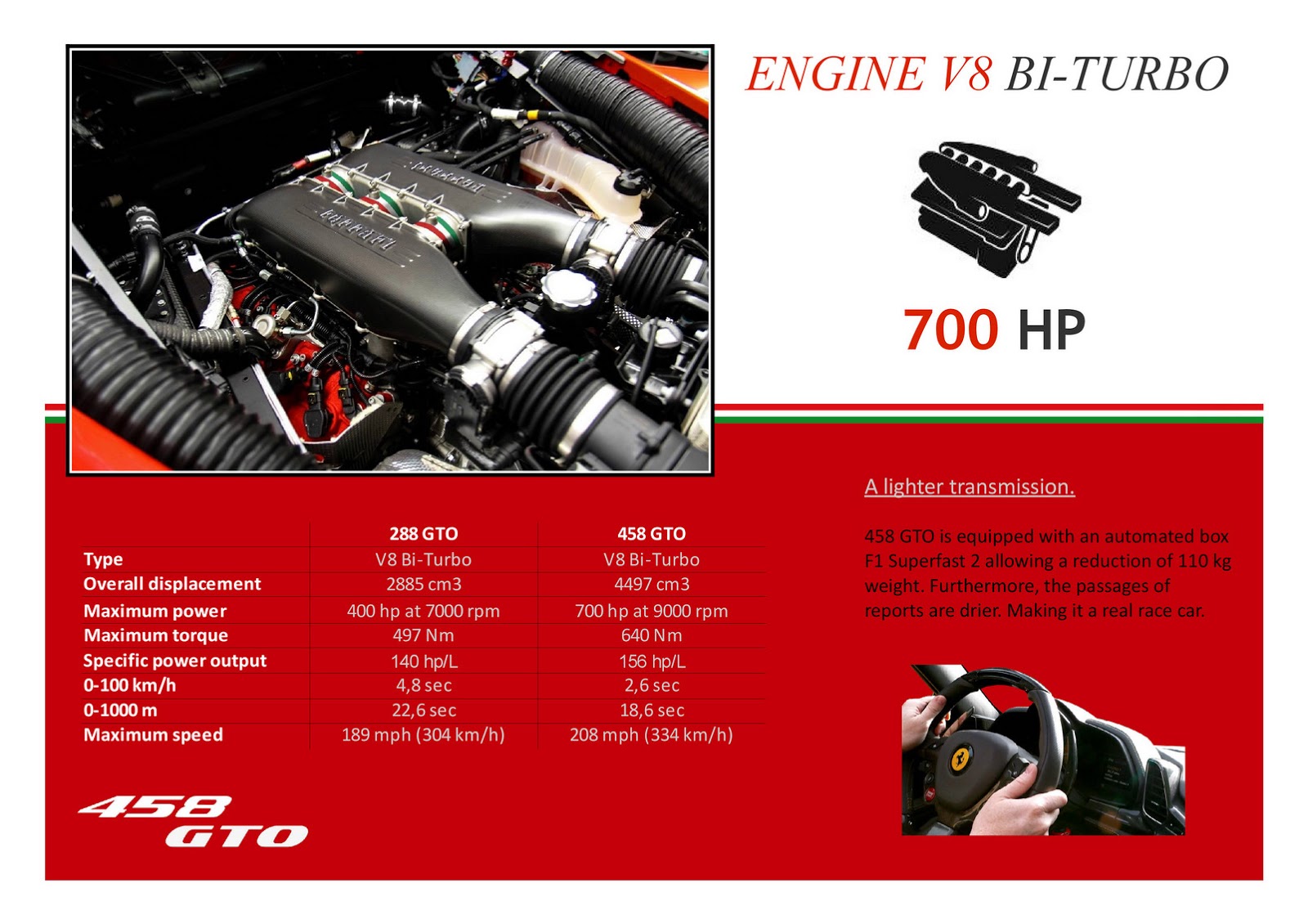 Creación de Morfouasse está construido alrededor de la Ferrari existente 458, con un cambio de imagen 288 GTO-inspirado y un V8 de doble turbo voladura de un teórico de 700-caballos que presumiblemente permitirán alcanzar 100km / h en 2,6 segundos y alcanzan un máximo de 334 kmh (208 mph).