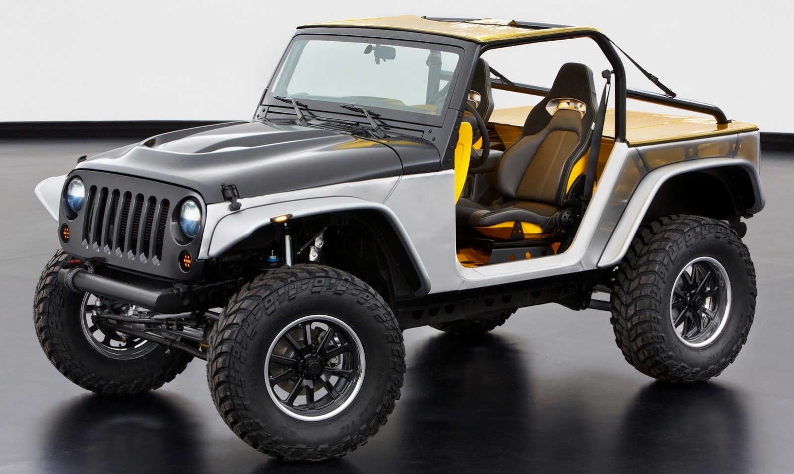 Otros puntos destacados incluyen los asientos delanteros procedentes de la Viper SRT 2013, el Mickey Thompson de 35 pulgadas llantas todoterreno ligero de aleación de 17 pulgadas, y la única, ver a través de tejido arquitectónico plata utilizada en la parte posterior.