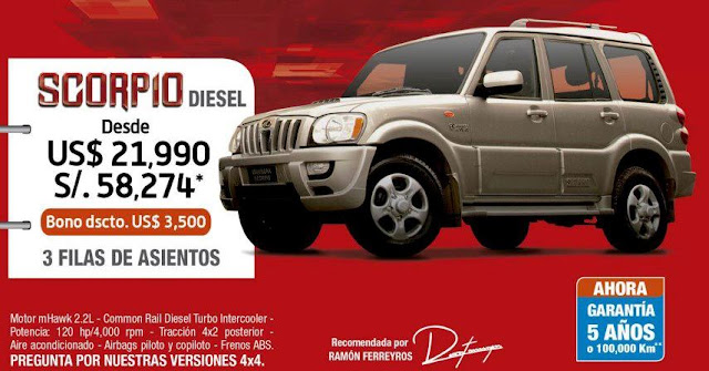 El Mahindra Scorpio es un SUV fabricado por Mahindra & Mahindra Limited, la empresa insignia del grupo indio Mahindra. Fue el primer SUV de la compañía construyó para el mercado global. El Escorpión ha sido aceptada con éxito en los mercados internacionales en todo el mundo, y en breve se pondrá en marcha en los Estados Unidos.