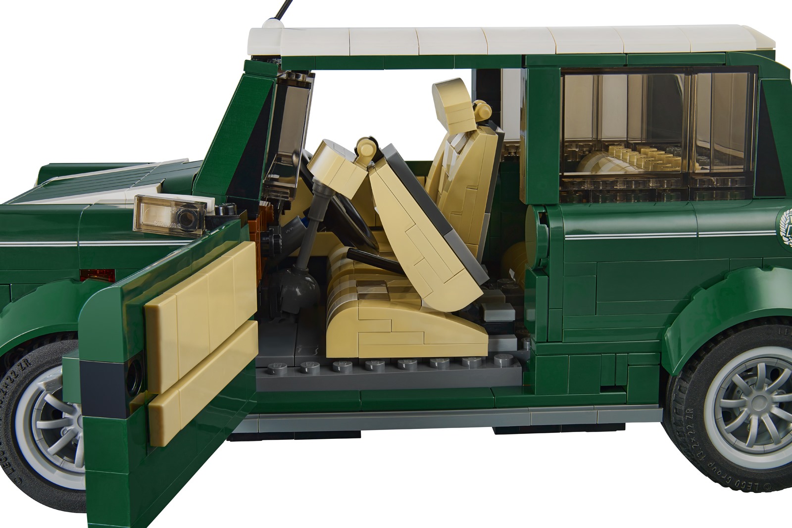 Además, LEGO ha diseñado el juguete con un techo desmontable con el fin de conceder a los jugadores el acceso sin obstáculos a la tan coloreado interior con asientos de modelado, el salpicadero al estilo de chapa, girando el volante, palanca de cambios y freno de mano y móviles. La réplica también obtiene una rueda de repuesto en un compartimiento separado, motor detallado y luces de niebla, mientras que los accesorios incluyen una cesta de picnic, botella y manta.